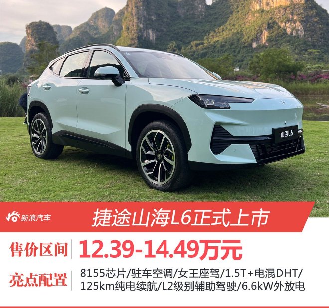 8月25日,捷途山海L6在桂林正式上市,新车定位于紧凑型电混SUV,共推出3款车型,官方指导价为12.39-14.49万元,捷途山海L6最大的亮点在于动力以及续航能力方面,所搭载的核心动力为奇瑞鲲鹏1.5TD+无级超级电混DHT,具有125KM的纯电续航能力,以及+1400KM的综合续航表现。